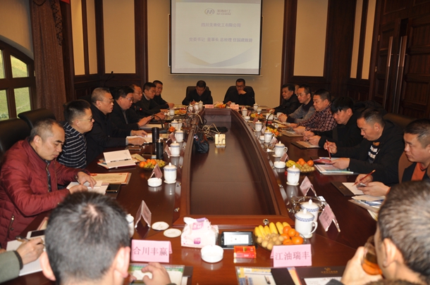 12月29日,美青化工在綿竹召開(kāi)2017年新品推介會(huì),省內(nèi)經(jīng)銷(xiāo)商及云南片區(qū)相關(guān)客戶參加會(huì)議。董事長(zhǎng)、總經(jīng)理任國(guó)建同志向與會(huì)經(jīng)銷(xiāo)商介紹了公司2016年度生產(chǎn)經(jīng)營(yíng)情況。任總說(shuō),2016年化肥行業(yè)遭遇有史以來(lái)最嚴(yán)峻的寒冬,