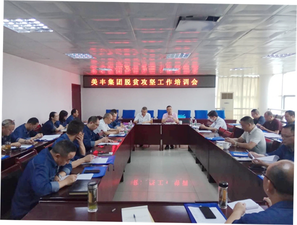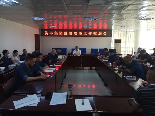 6月1日上午,美豐集團在美青化工生產大樓二會議室召開脫貧攻堅工作推進會。集團黨委書記、總經理任國建,黨委委員、副總經理宋根、謝安、何琳,黨委委員、總會計師李旭東,黨委委員、總經理助理張鵬出席了會議。會上