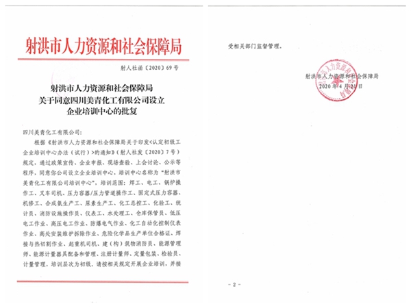 根據(jù)國家《職業(yè)技能提升行動實施方案(2019—2021年)》和人社部門相關(guān)文件要求,我公司經(jīng)過資料準備和積極申請,2020年4月21日,美青化工職工培訓(xùn)中心正式獲批成立。職工培訓(xùn)中心的批準成立是公司深化改革,提升人