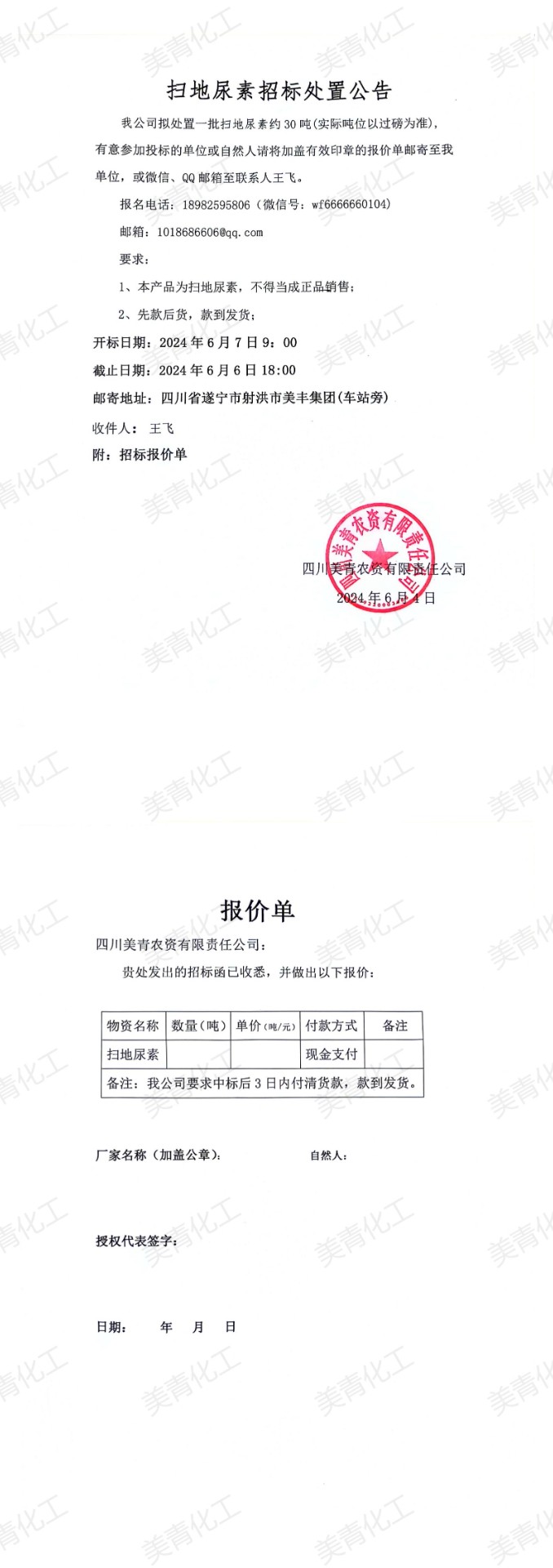 2024-06-04掃地尿素招標處置公告
