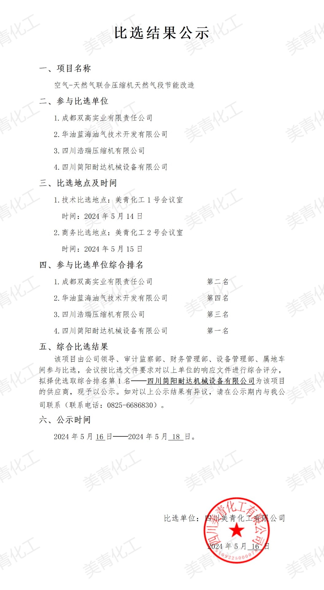 2024-05-16壓縮機(jī)天然氣段節(jié)能改造比選結(jié)果公示