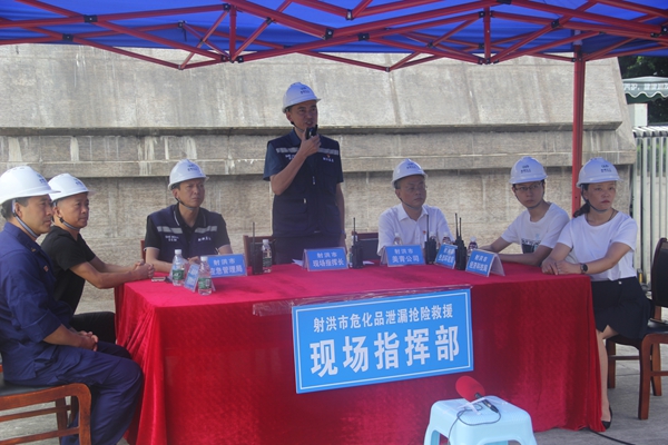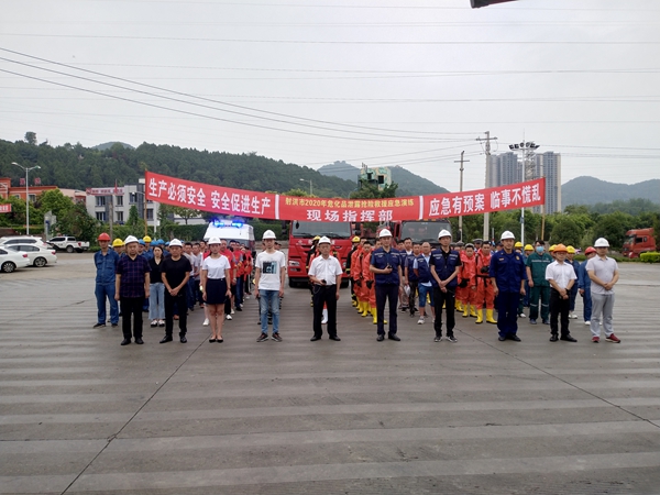 為全面提升應(yīng)對?;肥鹿侍幹盟胶蛻?yīng)急救援能力,根據(jù)遂寧市委、市政府決定,開展遂寧市2020年防汛減災(zāi)搶險救援應(yīng)急演練。我公司作為此次演練中的重要一環(huán),7月4日上午,在工業(yè)園區(qū)開展射洪市2020年危化品泄露搶險救援應(yīng)急演練。公司領(lǐng)導(dǎo)任國建、宋根、謝安及公司應(yīng)急搶險隊、遂寧化工應(yīng)急救援隊、射洪市消防救援大隊等參加演練,射洪市應(yīng)急管理局局長李青現(xiàn)場指揮,遂寧市副市長羅孝廉、雷云坐鎮(zhèn)市指揮部指揮。